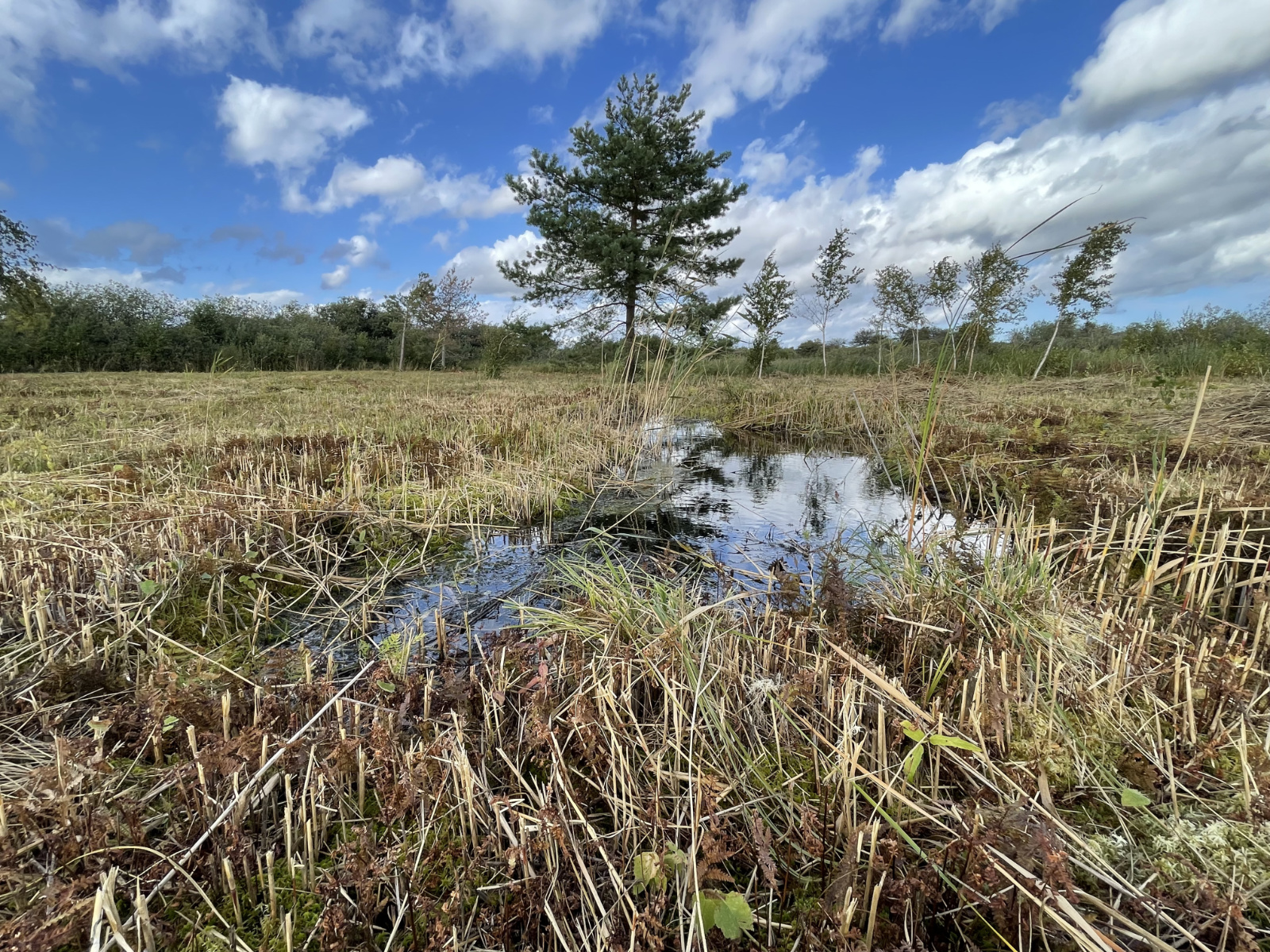 Das Birkenmoor ist ein Kesselmoor – es benötigt also Regenwasser, um den eigenen Wasserstand zu halten. Wie sein Name schon sagt, befanden sich besonders viele Birken auf der einstigen Moorfläche. Sie bevorzugen nährstoffarme Böden und können unter diesen Bedingungen besonders gut wachsen. Das hat zur Folge, der Wasserstand mit zunehmendem Wachstum der Bäume rapide fällt und dass Moor Treibhausgase nicht bindet, sondern im Gegenteil emittiert. Deswegen wurden 2024 ein Großteil der Moorbirken entnommen. Nach den Birken kam dann das Schilf.
